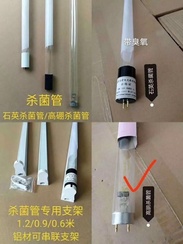 但市面上目前分為兩種消毒燈,一種是高硼管,一種是石英管,如下圖所示,高硼管紫外線殺菌燈的結(jié)構(gòu) (UV燈)實際上是屬于一種低壓汞燈,和普通日光燈一樣,利用低壓汞蒸汽(<10-2Pa)被激發(fā)后發(fā)射紫外線。不同的是日光燈的燈管采用的是普通玻璃,253.7nm紫外線不能透出來,只能被燈管內(nèi)壁的熒光粉吸收后激發(fā)出可見光。如果改變熒光粉的成分和比例,它就可以發(fā)出我們通常所見的不同顏色的光。